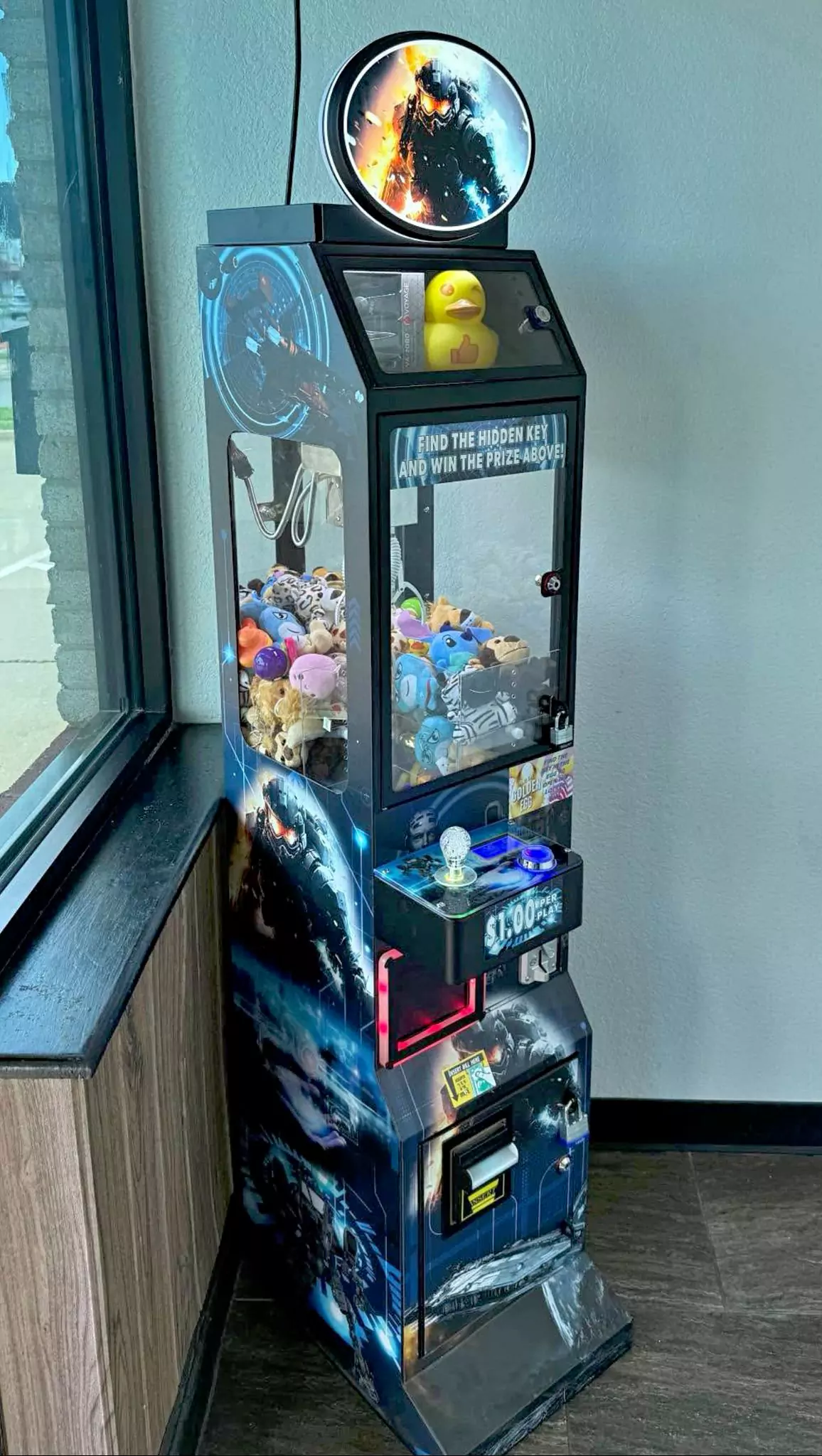 • Mini claw game machine designed for small gifts or prizes. Can be a perfect fit for ice cream shops, coffeehouses and smaller scale businesses.