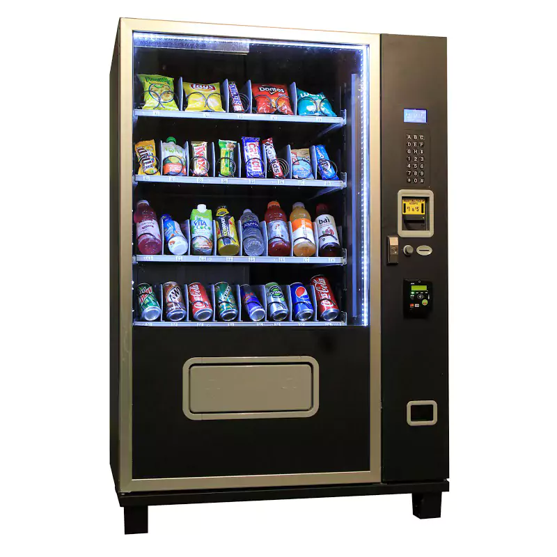 • Combination Vending Machine, capable of vending snacks, pastries, candies and drinks