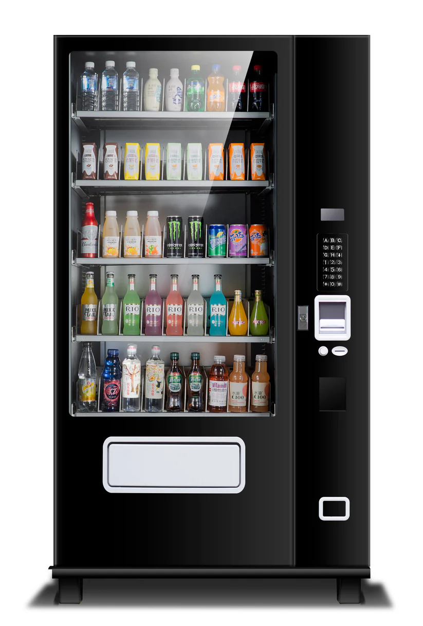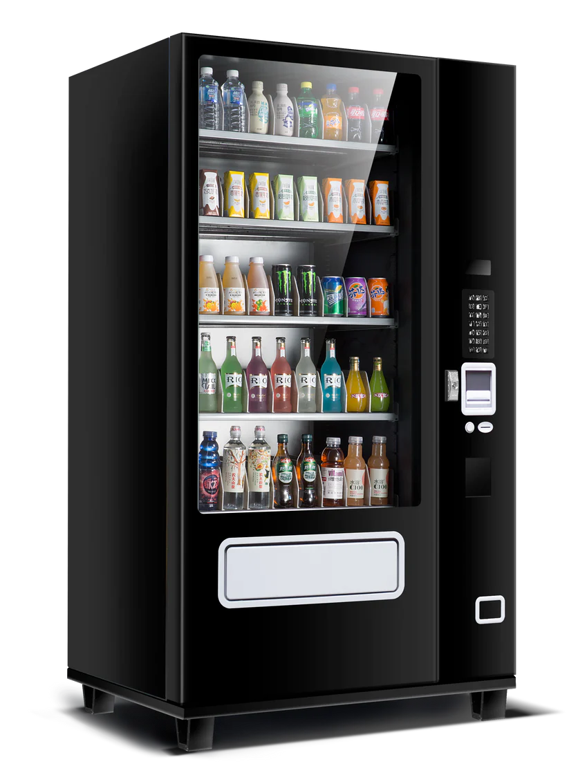 • Elevator drink vending machine capable of vending different size cans and bottles (including glass)